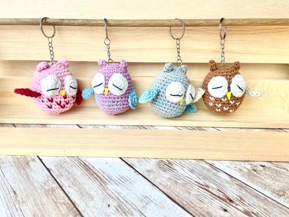 Crochet Little Baby Owl Keychain Charm Small Sleeping Owl Etsy
